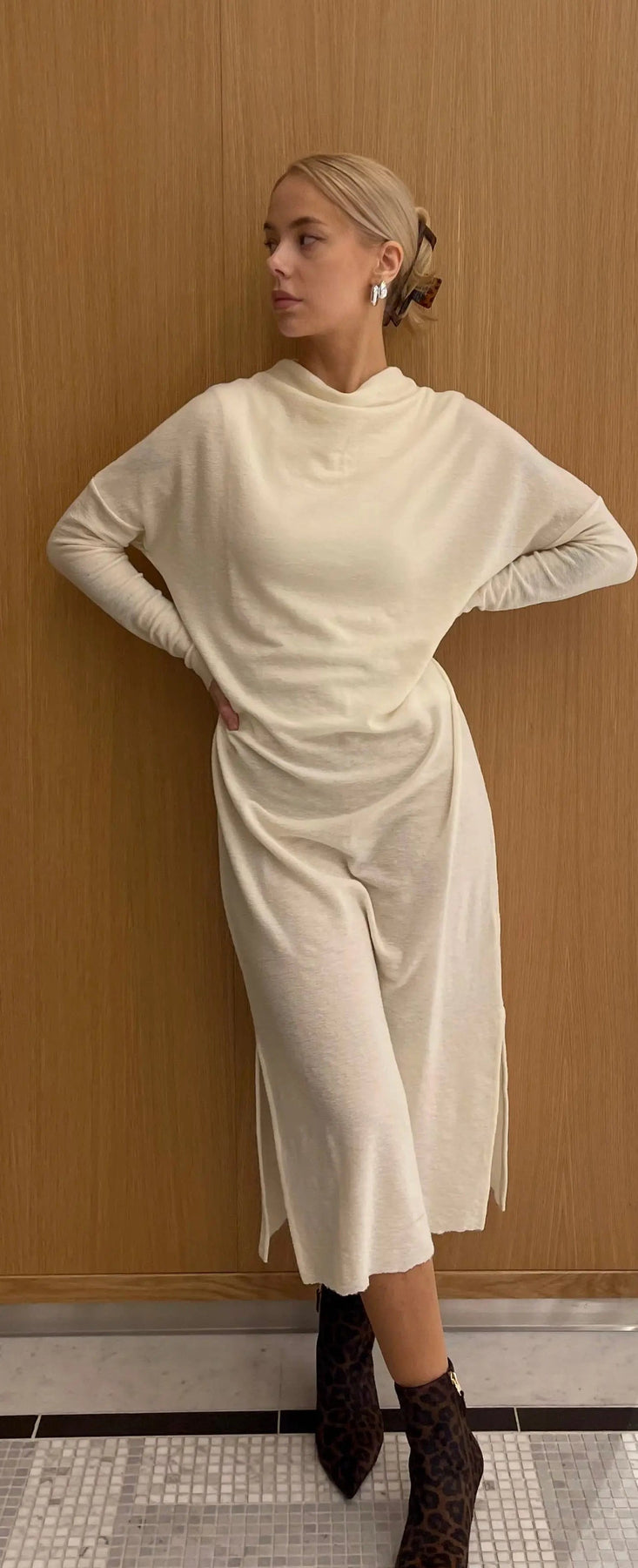 By Basics - Li Merino Wool Dress Loose Long Cloud Dancer