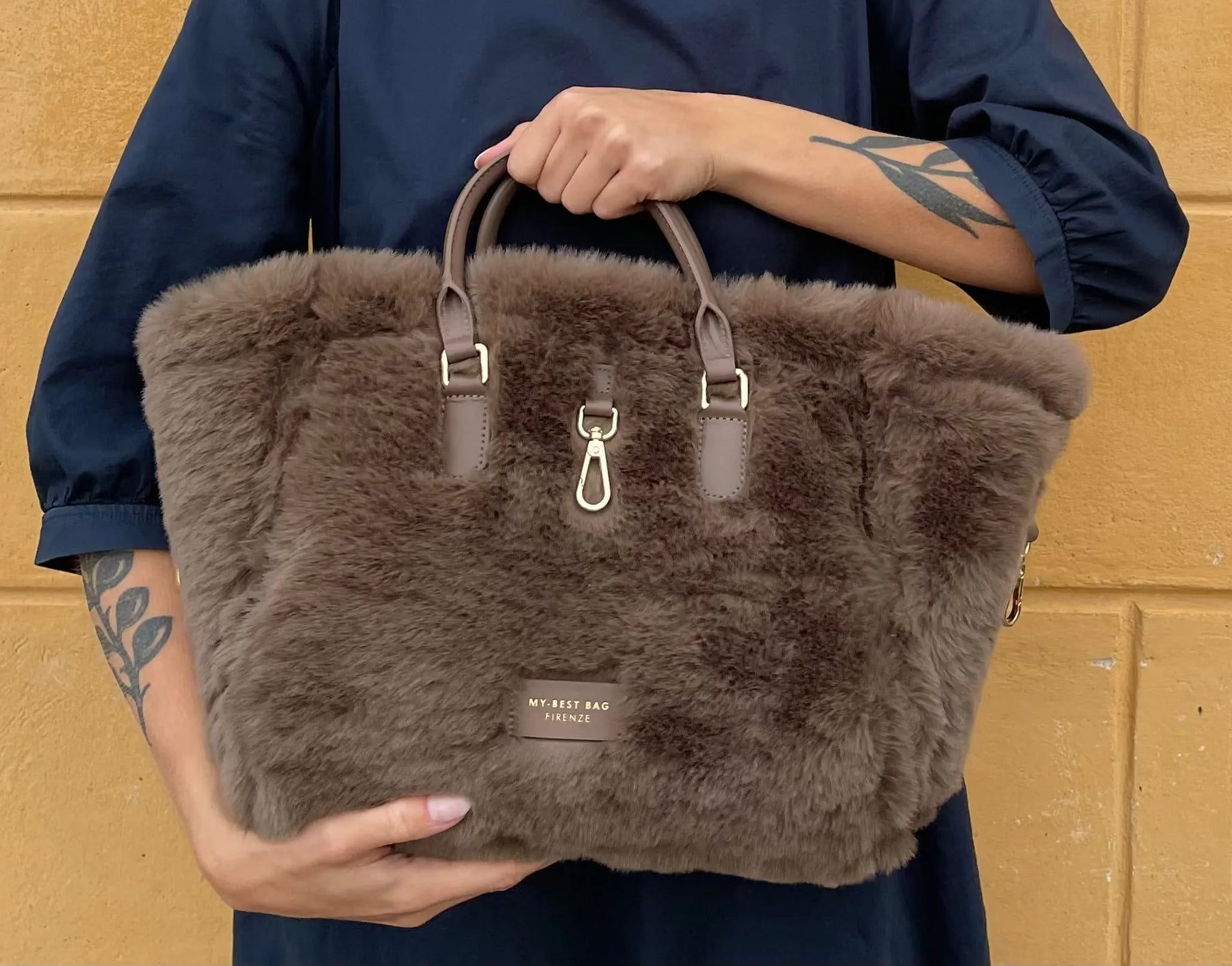 My Best Bag Firenze - Atena Reversible Bag Fur Grey Small With Bag-In-Bag