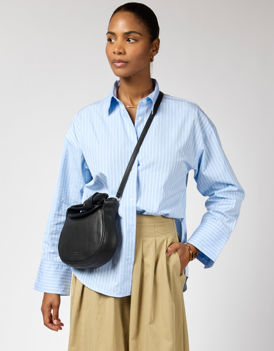 Coco Croissant Black -sävyssä on rohkea, naisellinen ja aina valmiina kaikkeen. Kuten ranskalainen lempicroissanttisi, sen kaareva siluetti ja rusetilla viimeistelty kahva tarjoavat todellista tyyliä, kun taas pehmeä pintanahka tuo voinpehmeän viimeistelyn. Laukun sisältä löytyvät piilotetut renkaat irrotettavaa crossbody-hihnaa varten, magneettisuljenta sekä taskut, jotka pitävät tärkeät tavarasi järjestyksessä ja turvassa. Kannettuna käsivarrella tai crossbodyna Coco yhdistää pariisilaisen viehätyksen ja arjen käytännöllisyyden – todellinen herkku, ilman murusia.