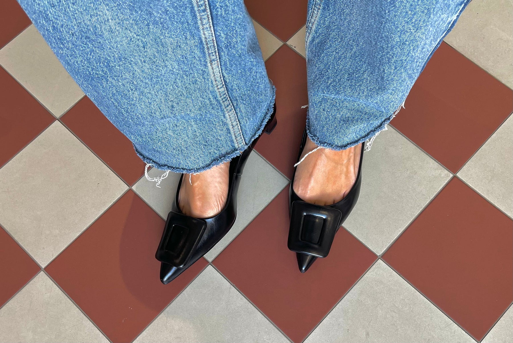 Bonnie is a classic feminine shoe that combines timelessness with sophisticated details. The soft black leather upper makes the model versatile and easy to combine with both office style and evening wear. The pointed toe gets its showiness from the elegant rectangular buckle decoration, which brings a wonderful touch of modern luxury. The low heel ensures comfort even during prolonged use.