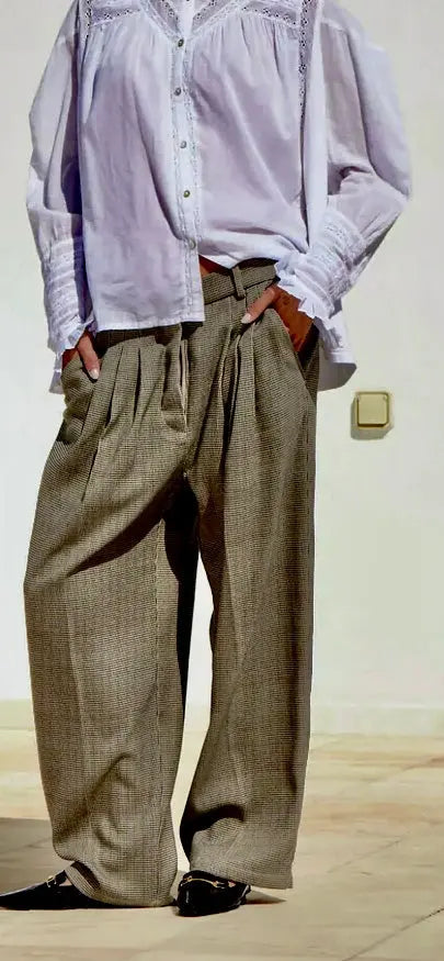 The gorgeous Class trousers are inspired by men's suit trousers. The trousers have practical side pockets and a buttoned back pocket. The front pleat adds both space and structure to the trousers. The soft waistband provides comfort. You can create different outfits with these trousers depending on whether you wear them at the hips or higher on the waist.